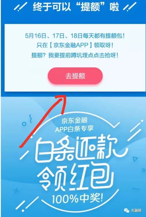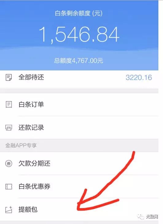 方法一:使用京东金融app,进入app的京东白条→ 可用额度 → 提额包!京东白条的月度提额包,京东金融app专享,每个月发一次,点击立即领取,之后会有领取成功的提示;
