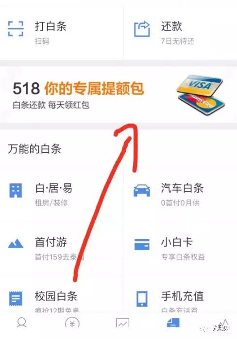 第二步点击登录进去,点击白条,可以看到这几天京东的活动,518提额包。