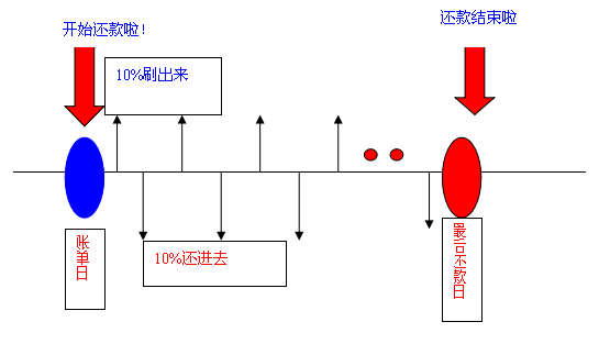 还款原理:每次刷出来的会在下期账单在让您还,而还进去的是还的本期账单,还10次就还完了。