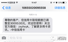 卡友小郭有一张中信I白金,信用额度为30000元,今日她收到一则银行发来的短信,称她的信用卡取现额度已经调整至30000元,达到100%。