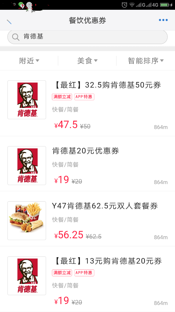 首先,在交行买单吧APP首页下滑靠左侧的“享美食”中点击“优惠券”,选择购买或积分兑换所需的肯德基代金券,日常折扣比例为19元购20元通用券,47.5元购50元通用券,56.25元购62.5元双人套餐券等等,以19元购买20元通用券为例,点击立即购买确认订单后在支付界面中可以选择12600积分抵扣18.9元,也就是12600积分+0.1元就能得到20元KFC优惠券,积分兑换比例每1000积分折合1.5元。优惠券获得后在买单吧APP“我的”->"餐饮券"中可以查看有效期。